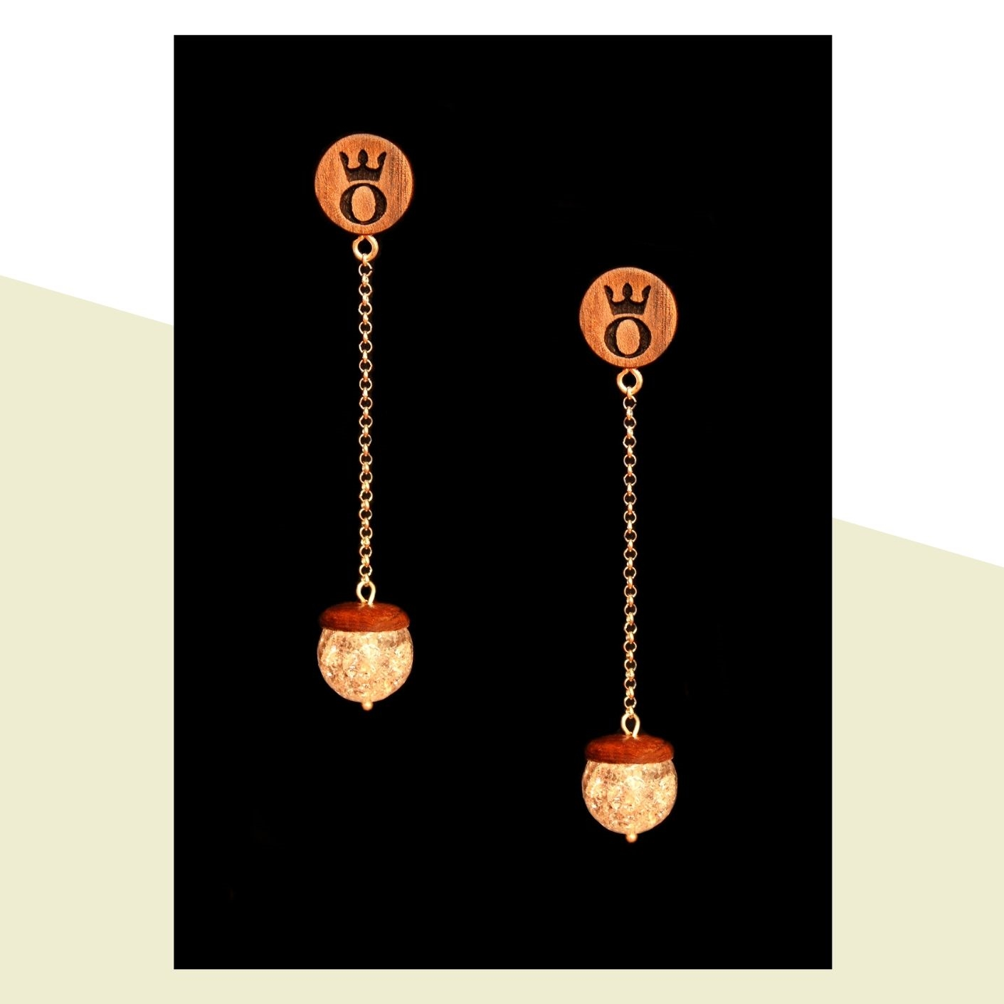 ხელნაკეთი ხის საყურეები Rhinestone-ით